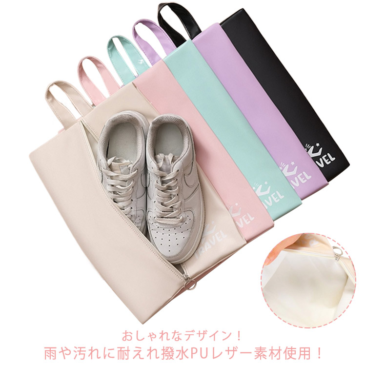 PUレザー シューズバッグ 靴袋 防水 高校生 中学生 女の子 おしゃれ ファスナー付き 靴カバー スニーカー シューズ入れ 靴入れ 可愛い 大人 子供 スパイク 上履き入れ 新生活 部活 持ち運び