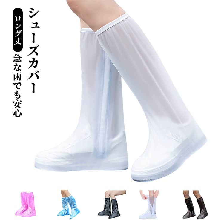 レイン シューズカバー ロング丈 防水 雨用 靴カバー 無地 男女兼用 滑り止め 雨靴カバー 梅雨対策 自転車用 アウトドア 雨の日 屋外作業 携帯用 コンパクト 軽量 通勤 通学