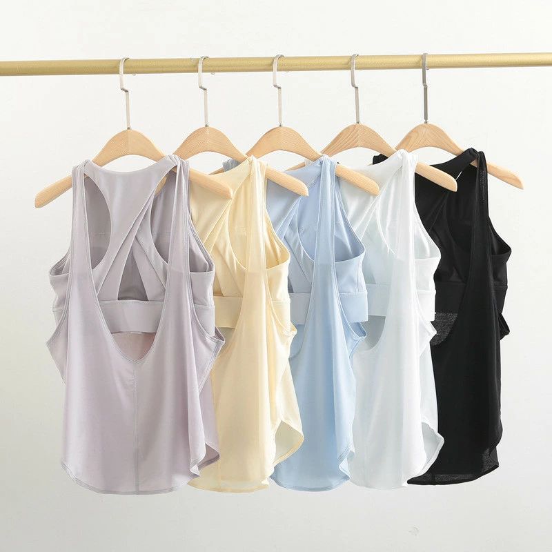 ヨガウェア トップス レディース ホットヨガ フィットネスウェア スポーツウェア ロング 体型カバー タンクトップ 半袖 ヨガ カップ付き