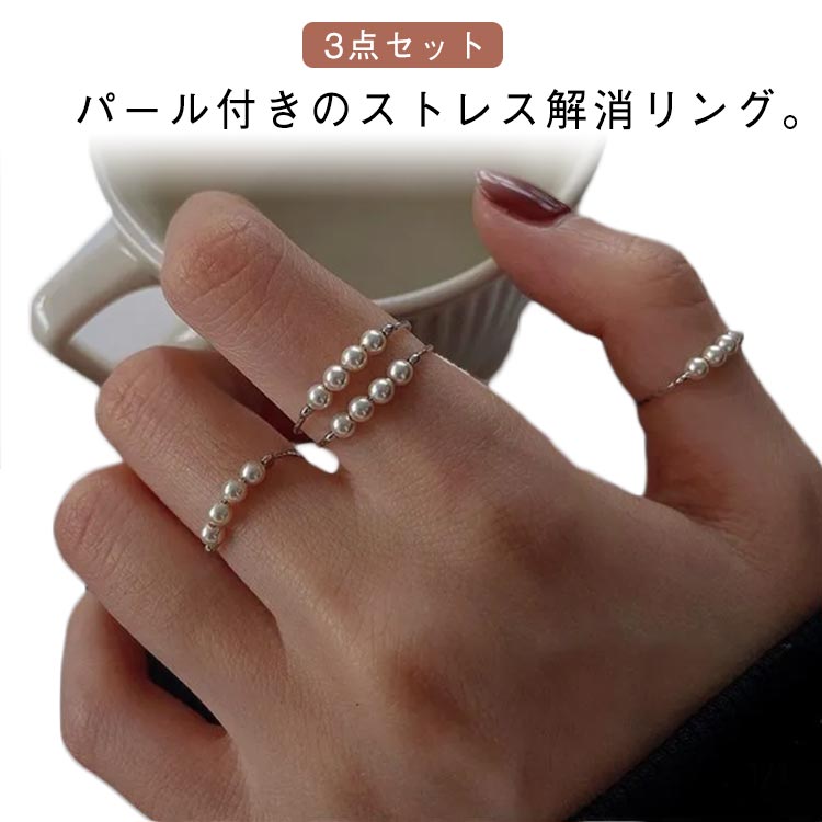 3点セット パール ストレス解消 リング かわいい ストレス解消リング 開閉リング 指輪 不安解消 ユニ おしゃれ ステンレス 可動ランナー 回転可能 調節可能 不安解消リング ジュエリー