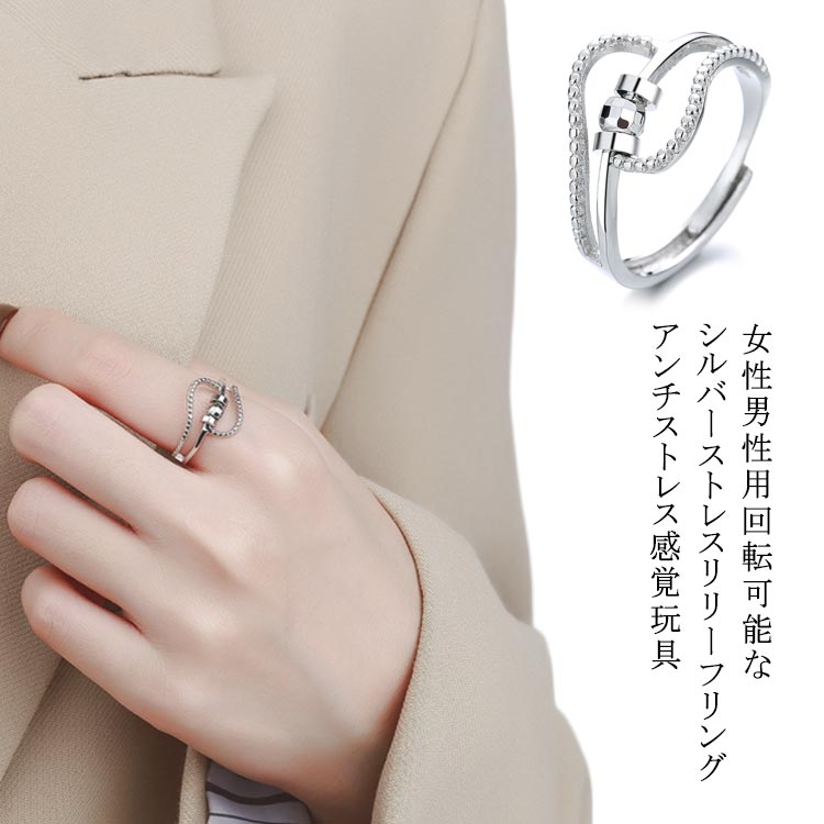 リング ストレス解消リング 指輪 調整可能なリング 不安リング 女性用リング 落ち着きリング ギフト 女性 ゴールド シルバー 送料無料