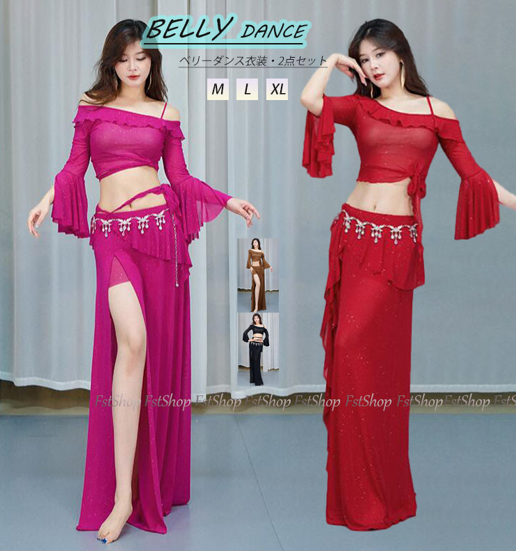 ベリーダンス ダンス衣装 上下2点セッ スポーツ アウトドア 人気 レッド2点セット ブラック2点セット パープル2点セット カーキ色2点セット レッド2点セット+腰チェーン ブラック2点セット+腰チェーン パープル2点セット+腰チェーン カーキ色2点セット+腰チェーン M L XL