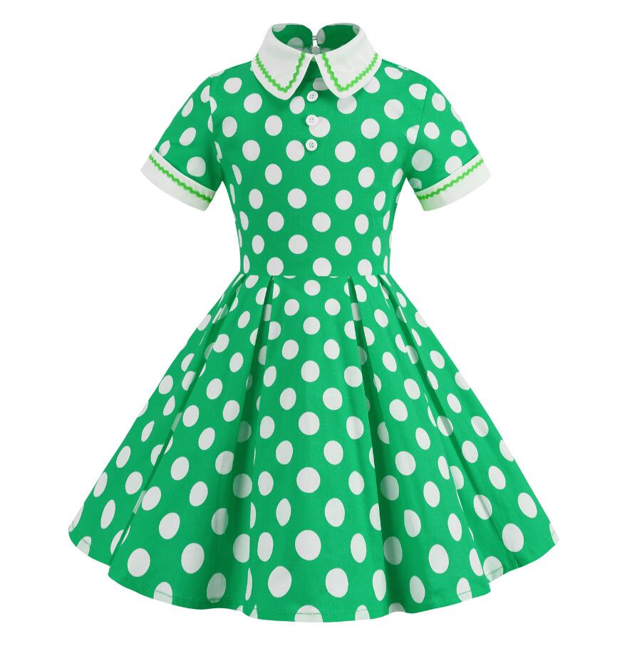子供半袖ワンピース キッズ ドット水玉 キッズ ワンピース 豊富な品揃え レッド グリーン ブルー イエロー 110 120 130 140 150