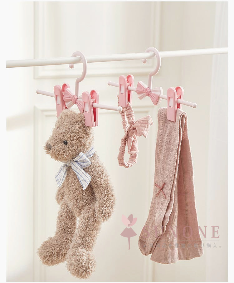 赤ちゃんのために伸縮可能な成長型パンツラック。可愛い蝶結びデザインが子供らしい。ハンガーのクリップ先は衣類を傷つけず、しっかり挟んで掛けることができます。ハンガーの2つのクリップは左右に移動が可能なので、さまざまな衣類に合わせてセットしたい位置にかんたんに移動できます。スカート、ズボン、パンツ、タオル、マフラーやスカーフ、水着や下着、靴下、ベビー衣類など小物を干すのに最適。ハンガーのヘッドが360度回転式なので掛けたい場所でご使用できます。