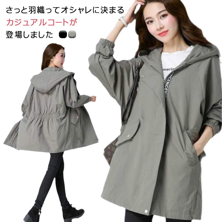 コート レディース フード付き カジュ コート ジャケット 早い者勝ち ブラック グレーグリーン M L XL 2XL 3XL 4XL 5XL