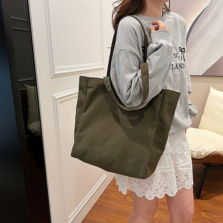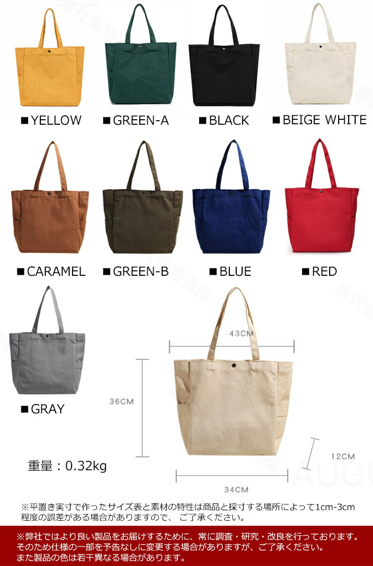 トートバッグ 大きめ キャンバス 大容 バッグ レディースバッグ トートバッグ 続々登場 YELLOW GREEN-A BLACK BEIGE WHITE CARAMEL GREEN-B BLUE RED GRAY
