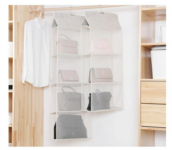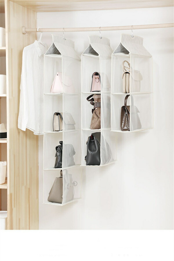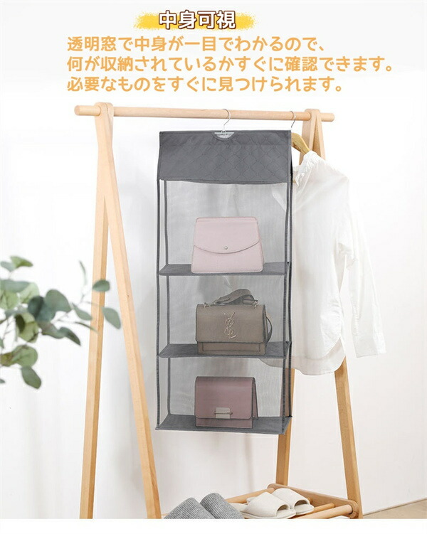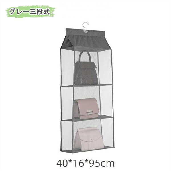 吊り下げ式バッグ収納ハンガーバッグ 収納 クローゼット 吊り下げ ハンガー 二 三 四段式 中身可視 バッグ収納ホルダー カバン収納ポケット フック付き ラック 壁掛け 立体 防塵 防カビ 整理整頓