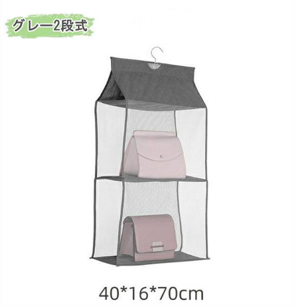 吊り下げ式バッグ収納ハンガーバッグ 収 単個/グレー 単個/ベージュ 単個/グリーン 2個入/グレー 2個入/ベージュ 2個入/グリーン 二段 三段 四段