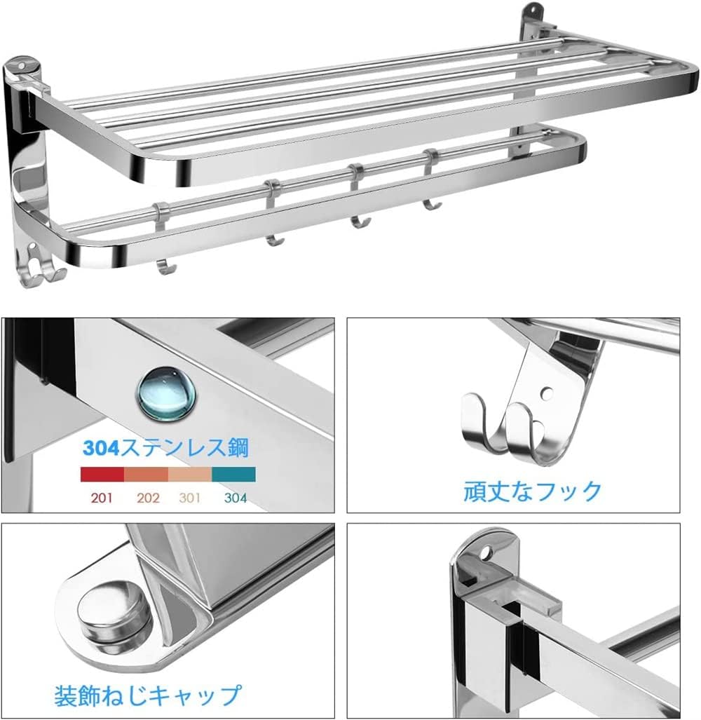 タオル掛け、バスルーム棚、ステンレス製壁掛けタオル掛け、タオル掛け、バスルームタオル棚、ステンレス製タオル棚、バスルームキッチン用金属棚収納ホルダーホテルバスルームラック