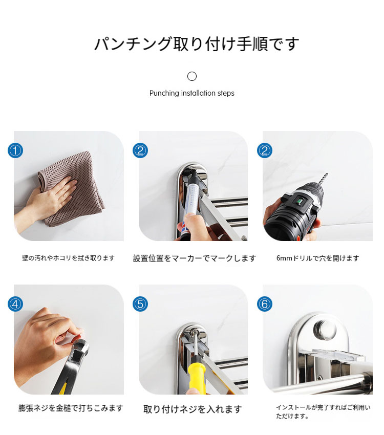 設置:自己接着性、優れた接着性があり、キッチンやバスルームの表面にしっかりと接着することができます。穴を開ける必要はなく、壁面に損傷を与えることもありません。ネジが含まれています、穴の取り付けもできます。