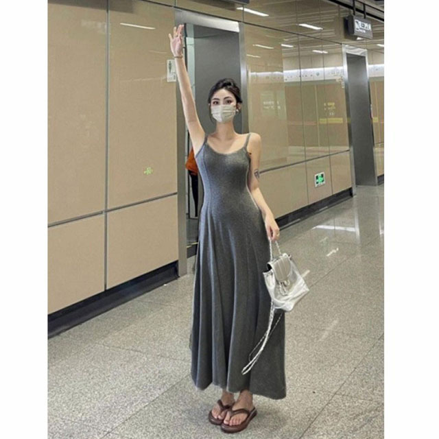 カップ付き ワンピース ロング フレア レディースファッション 超目玉商品 ブラック グレー S M L XL 2XL