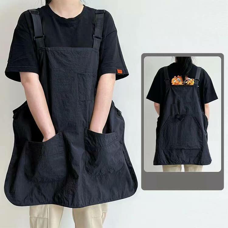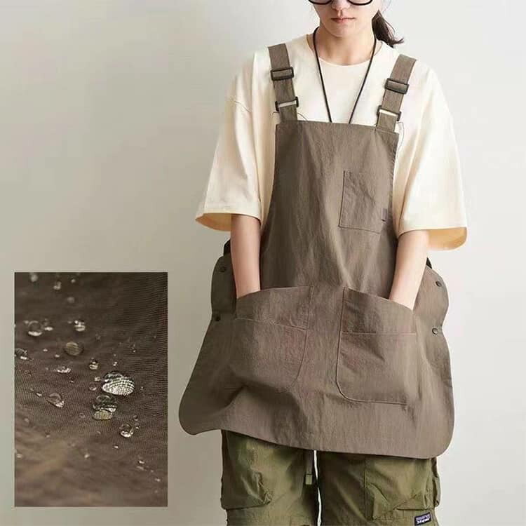 撥水加工を施した薄手素材で、水や汚れをしっかりガードする実用的なエプロンです。