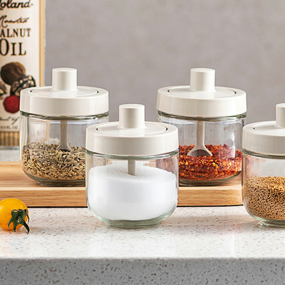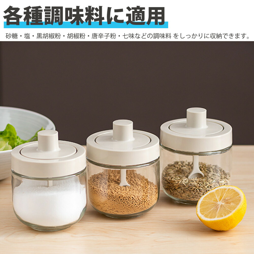 商品名:調味料入れ 密閉 スプーン付き 調味料容器 グラス 一体構造式