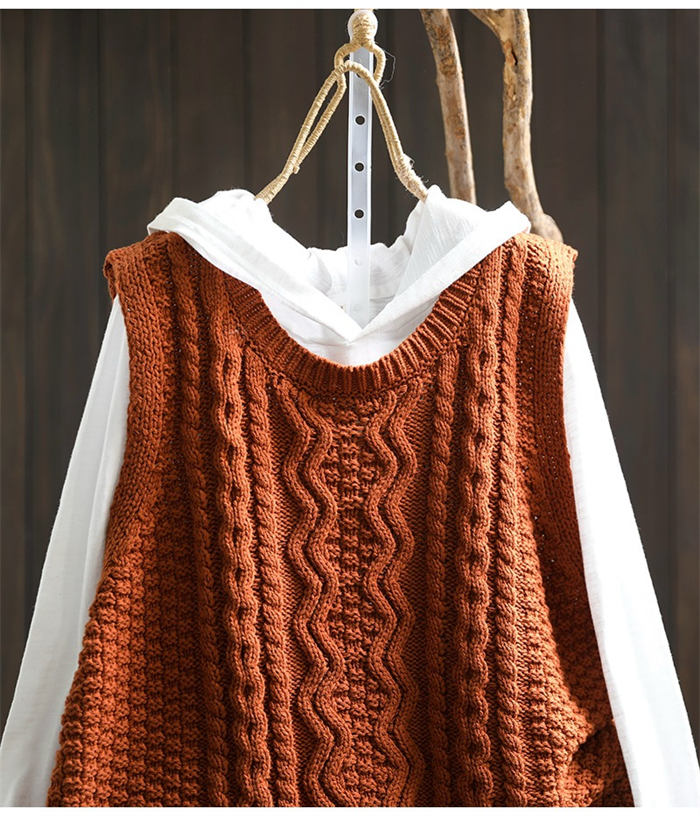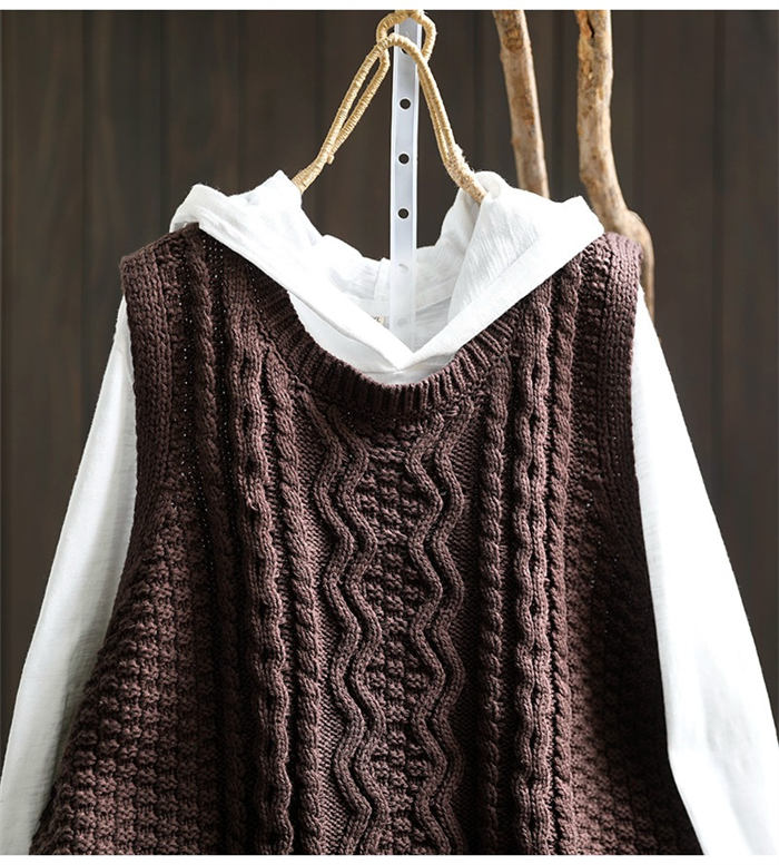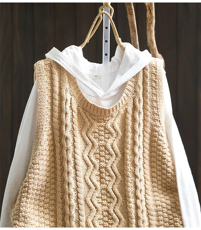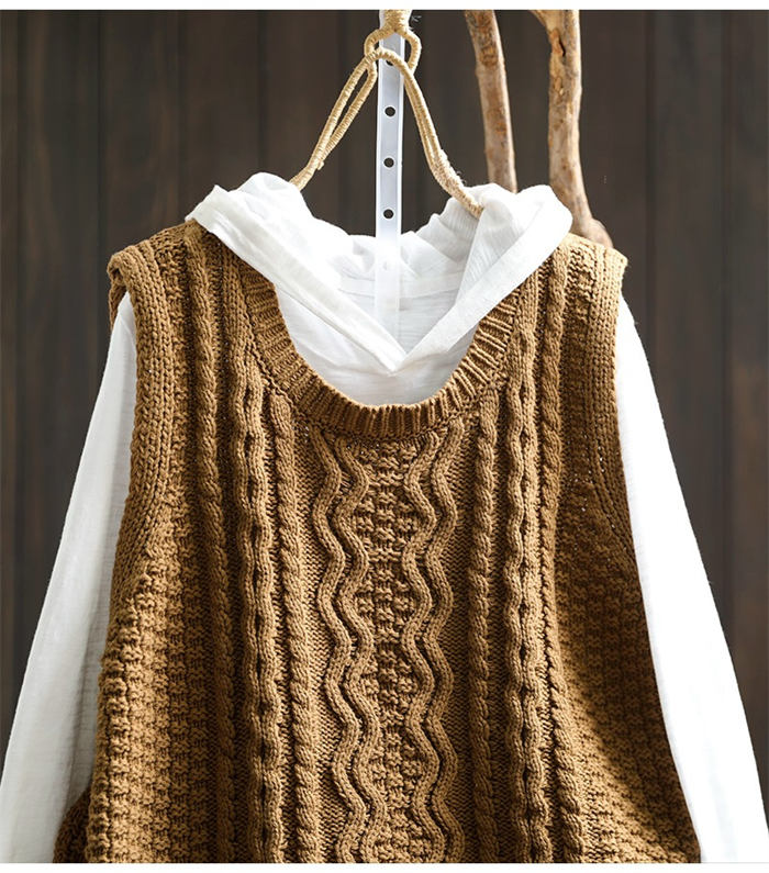 ケーブル編み ニットベスト Uネック トップス ベスト 早い者勝ち 暗い緑 キャメル ベージュ ブラック レンガ色 コーヒー色