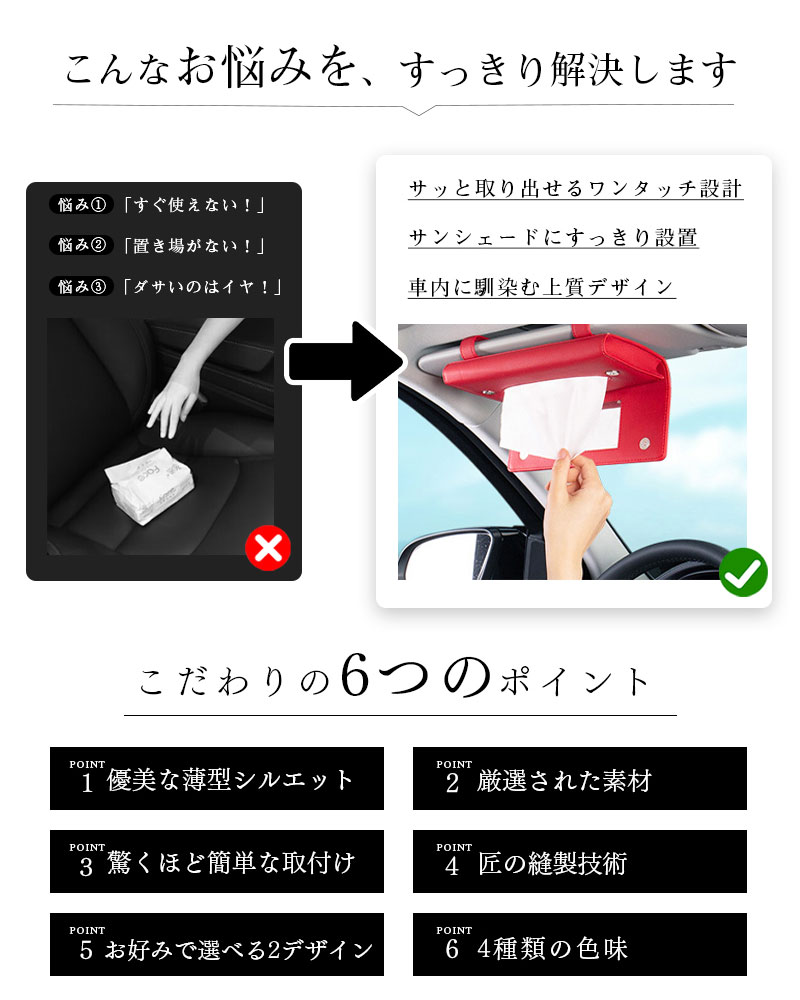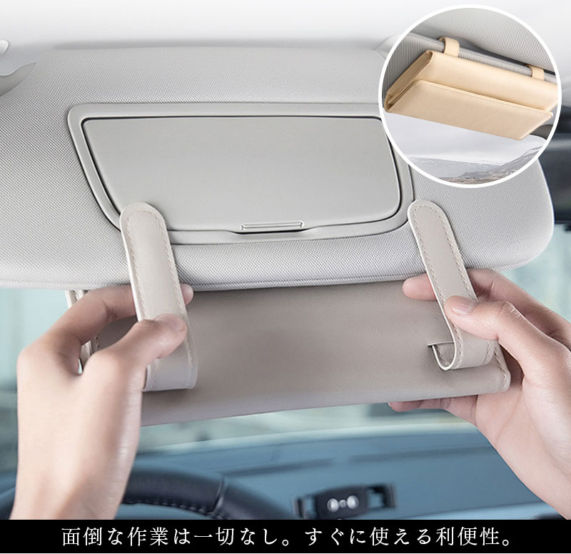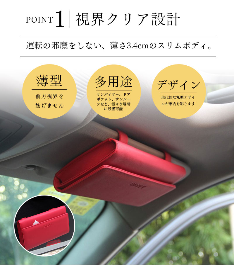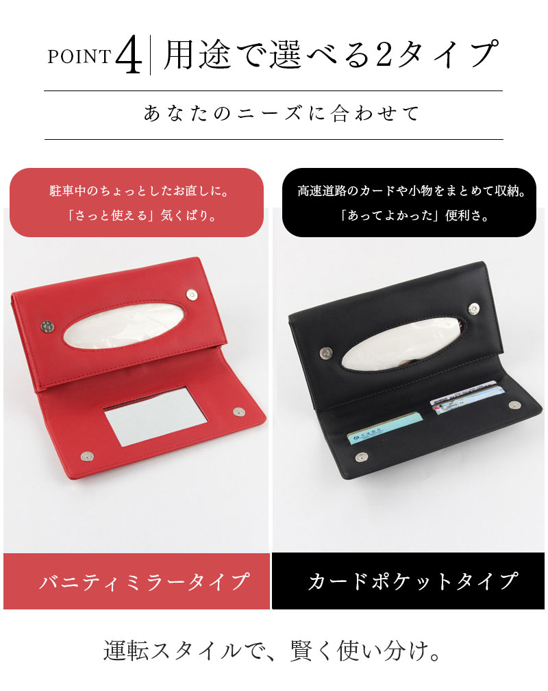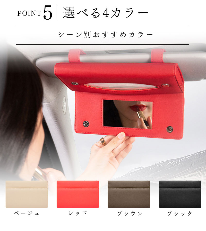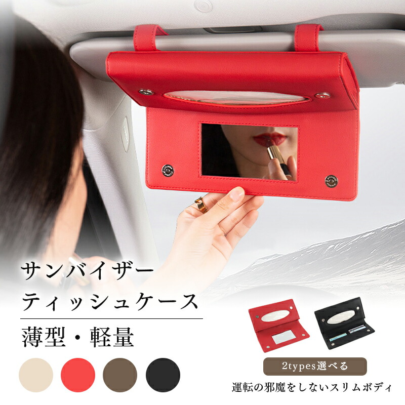 ティッシュケース 車用 サンバイザー ベージュ レッド ブラウン ブラック ミラー カードポケット