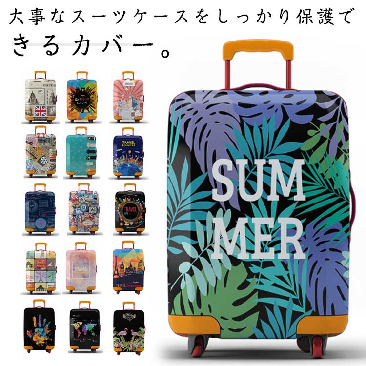伸縮 幅広く対応 ストレッチ 保護 傷 キャリーバッグケースカバー 盗難防止 保護カバー 見つけやすい 汚れ スーツケースカバー スーツケース カバー シンプル おしゃれ プリント柄 M L XL S