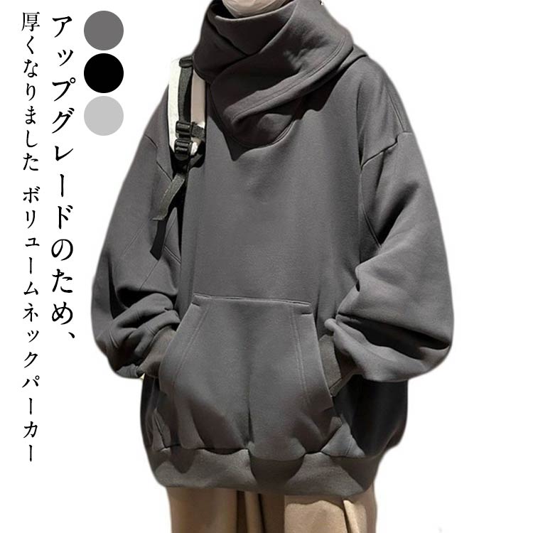 ボリュームネックパーカー 裏起毛 カッ メンズファッション 早い者勝ち 裏起毛あり灰 裏起毛あり黒 裏起毛あり浅い灰 S M L XL 2XL 3XL