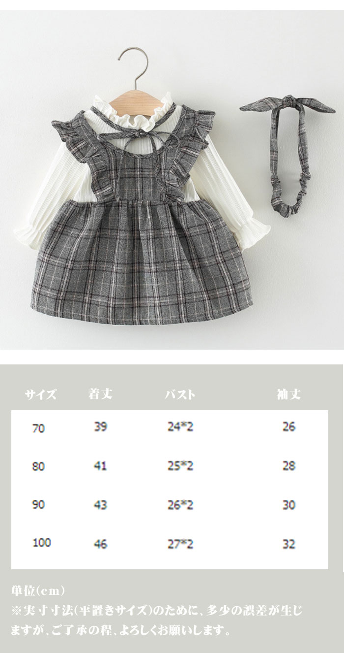 ベビー ワンピース キッズ ワンピ ベビーワンピ キッズワンピ チェック 子供服 ベビー服 子ども 女の子 おしゃれ 可愛い かわいい 重ね着風 卒園式 入園式 70 フォーマル