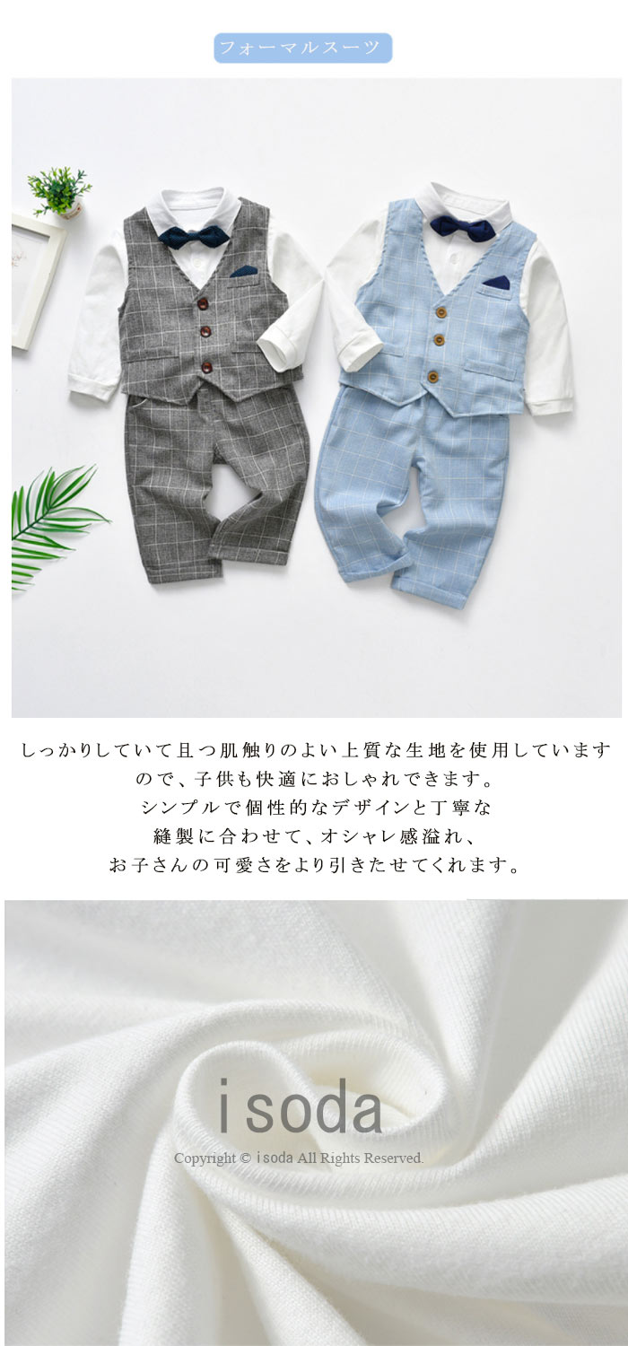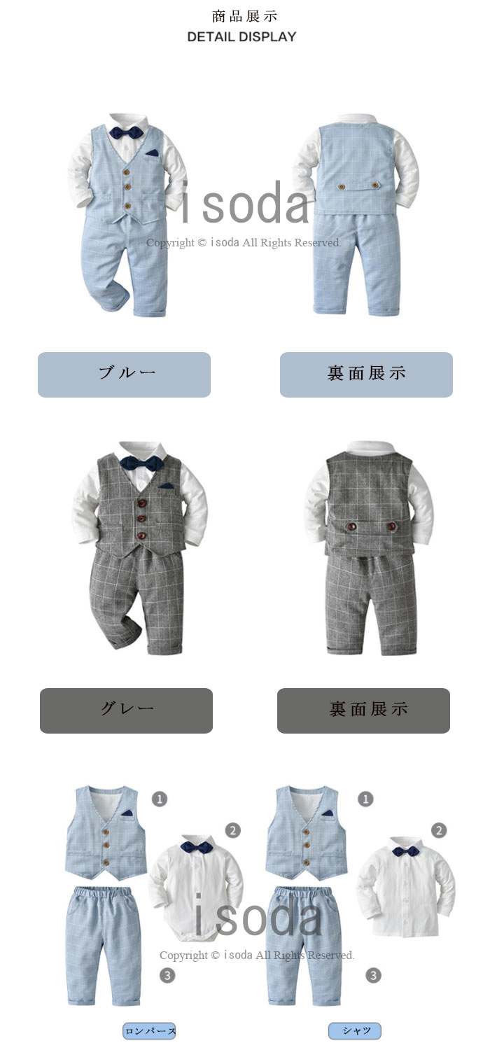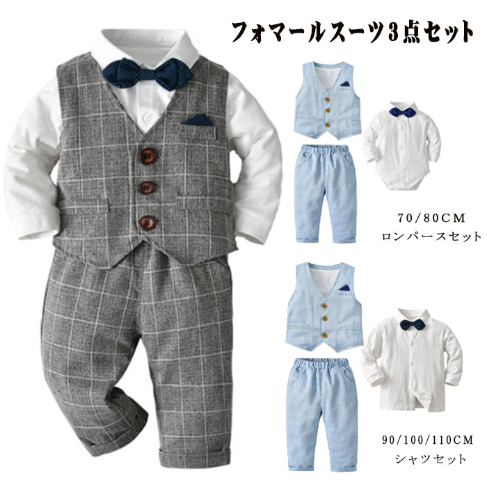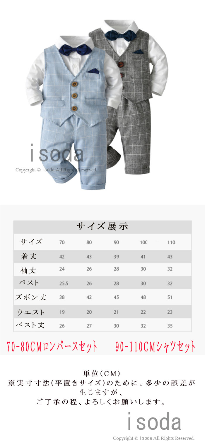 フォーマルスーツ 子供スーツ おしゃれ キッズ ベビー マタニティ 豊富な品揃え グレー ブルー 70cm(ロンパース) 80cm(ロンパース) 90cm(シャツ) 100cm(シャツ) 110cm(シャツ)