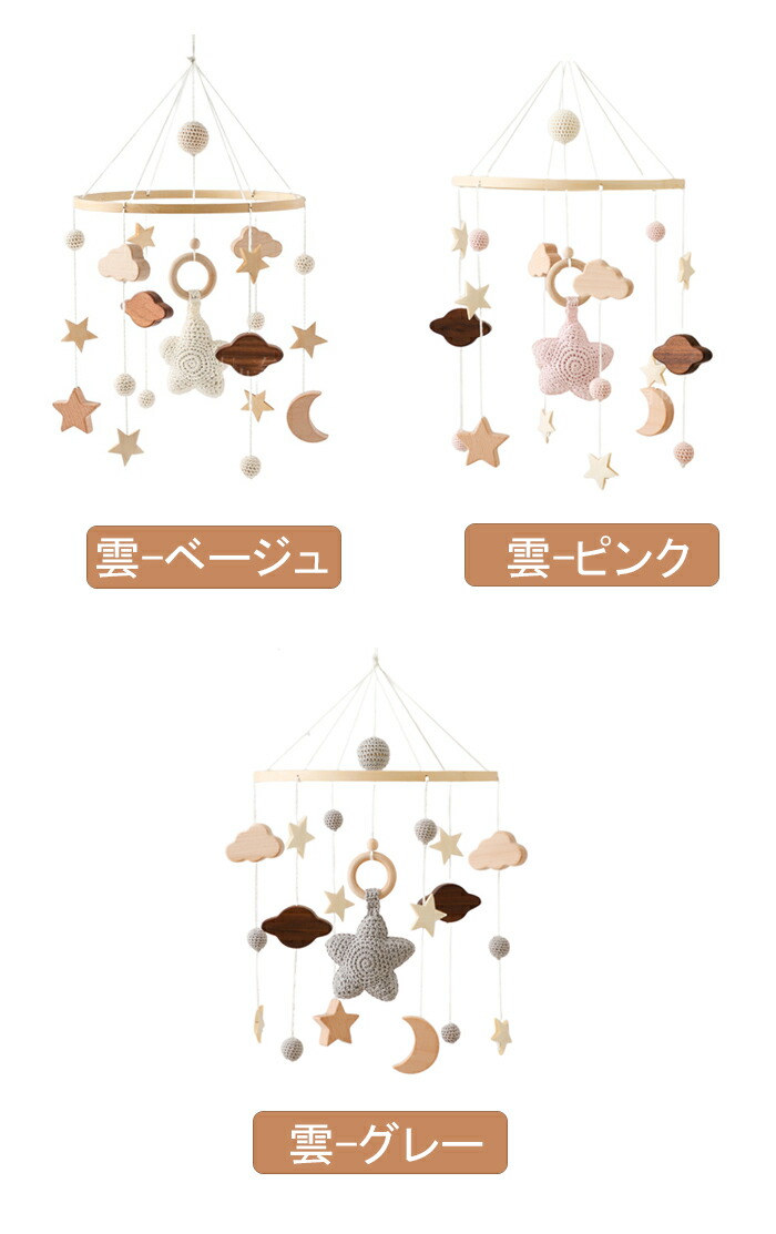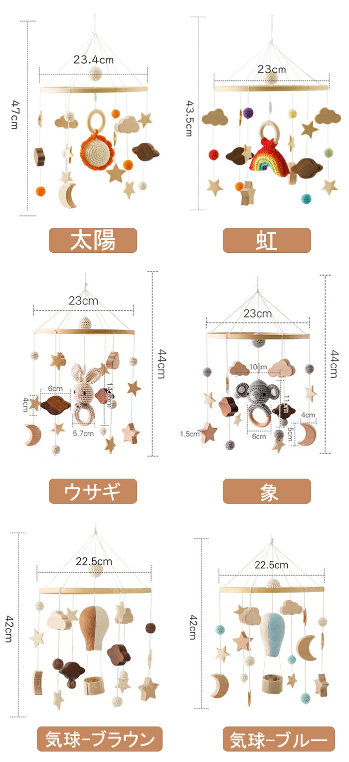 ベッドメリー 木製モービル ことり 壁 おもちゃ ベビー向けおもちゃ ベッドメリー 続々登場 太陽 虹 ウサギ 象 気球-ブラウン 気球-ブルー 雲-ベージュ 雲-ピンク 雲-グレー