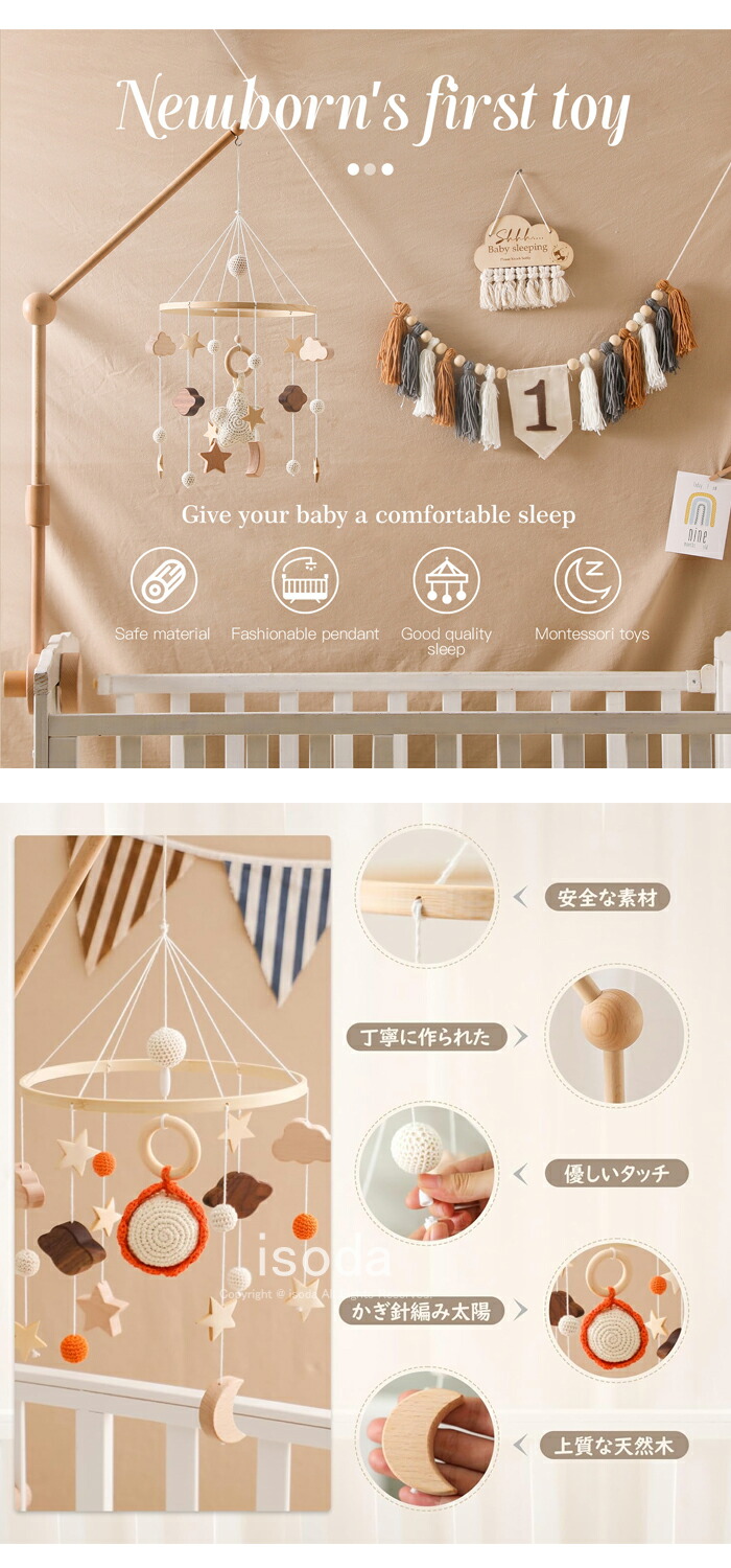 【多機能】新生児からお子様の成長を見守れます。ベビーカーやベビーベッドなど、吊り下げられる場所に適しています。 使用しないときは、子供部屋のインテリアとしても適しています。また、赤ちゃんのフォトプロップスとしてもお使いいただけます。