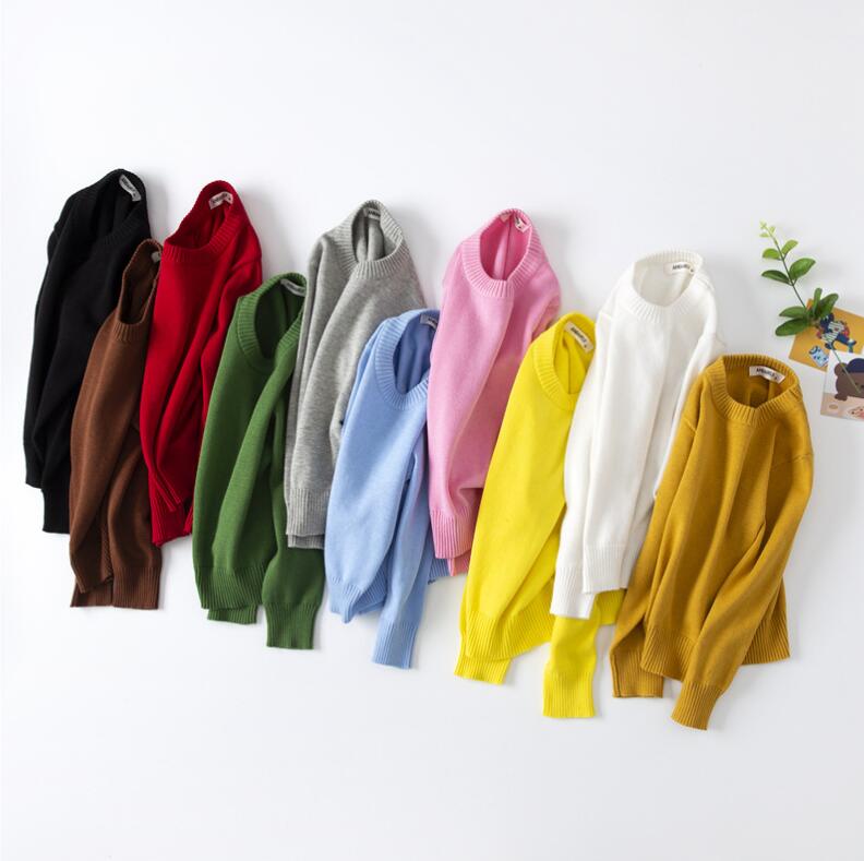 子供ニットセーター クルーネックセーター 男女兼用 女の子 男の子 キッズトップス 長袖 カジュアル風 秋物 秋冬 カラバリセーター 暖かい ゆったり 無地 ニットウェア カット 普段着