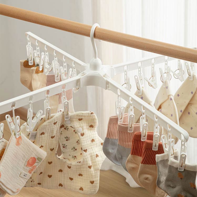 外して使えるピンチハンガー付き。 靴下や小物干しに便利。
