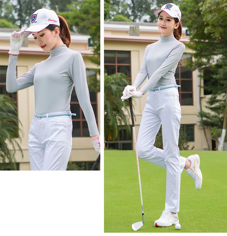 ゴルフウェア レディース インナーシャツ ハイネック UPF50+ 接触冷感 UVカット ストレッチ 日焼け防止 通気吸汗 速乾 薄手 GOLFウェア 長袖 ゴルフシャツ ヒンヤリ感 伸縮性