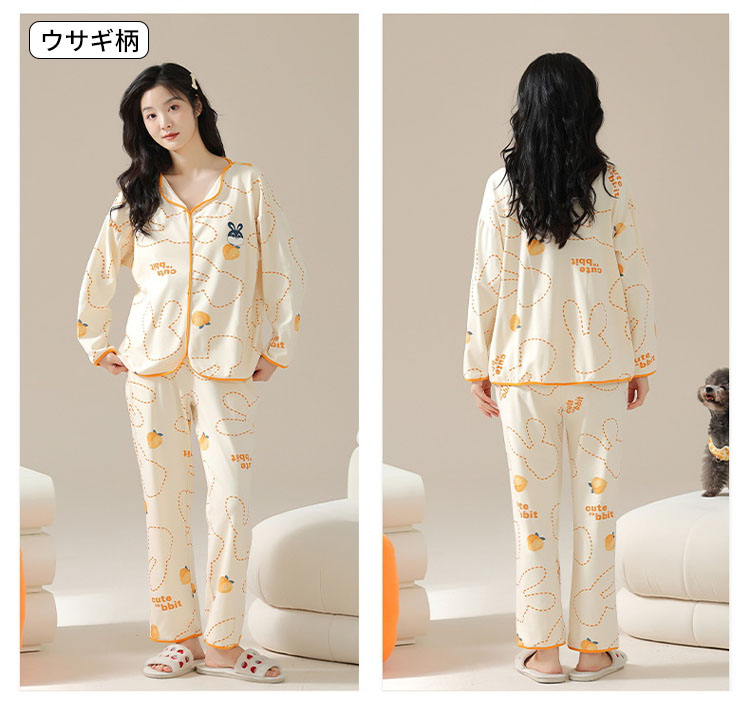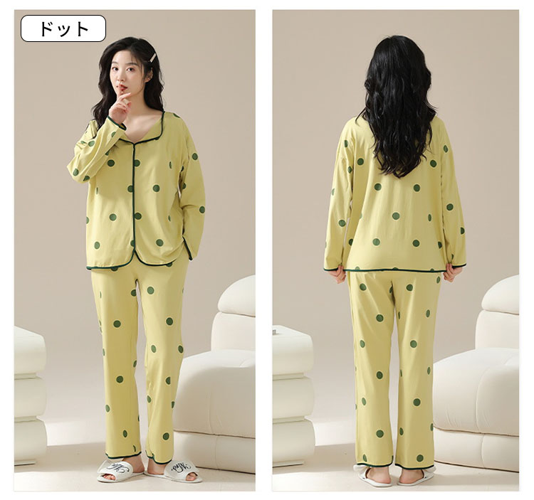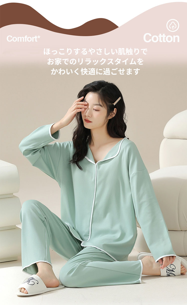 カップ付きルームウェア レディース 女の子 パジャマ パッド付き 胸カップ付き 滑らか 柔らかい 可愛い おしゃれ 長袖 前開き 春 秋 テーラー襟 上下2点セット 大学生 入院 通気性 無地 寮生活