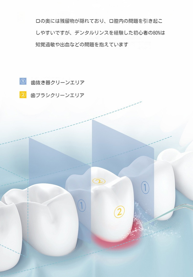 【様々な歯の問題に対応】歯周炎・歯の感度などの様々な歯の問題に対応できます。電動ウォッシャーを使用することで、これらの問題の症状を軽減し、口腔の健康を維持することができます。