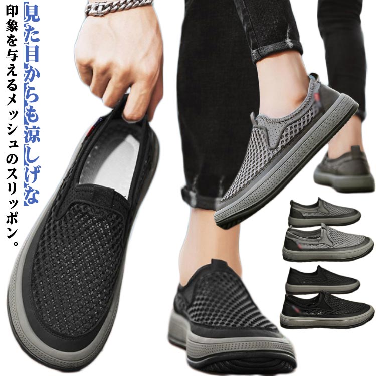 メッシュパンプス メンズ カジュアル 男性用 厚底 スリッポン 夏 通気性 メッシュ 幅広 ビジネスサンダル シューズ 軽量 柔らかい オフィス ぺたんこ メッシュスニーカー 通勤 通学 履きやすい