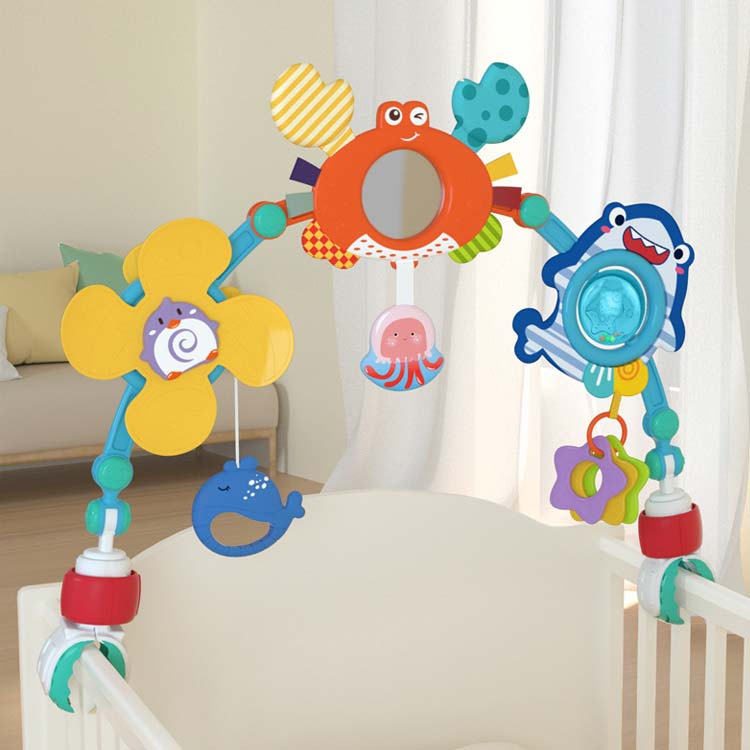 ベッドメリー ぶら下げおもちゃ ベビーカーおもちゃ アーチ型 ガラガラ ベビーおもちゃ 寝かしつけ 知育玩具 ベビーカー用振り子 ハイローチェア 取り付け簡単 多機能