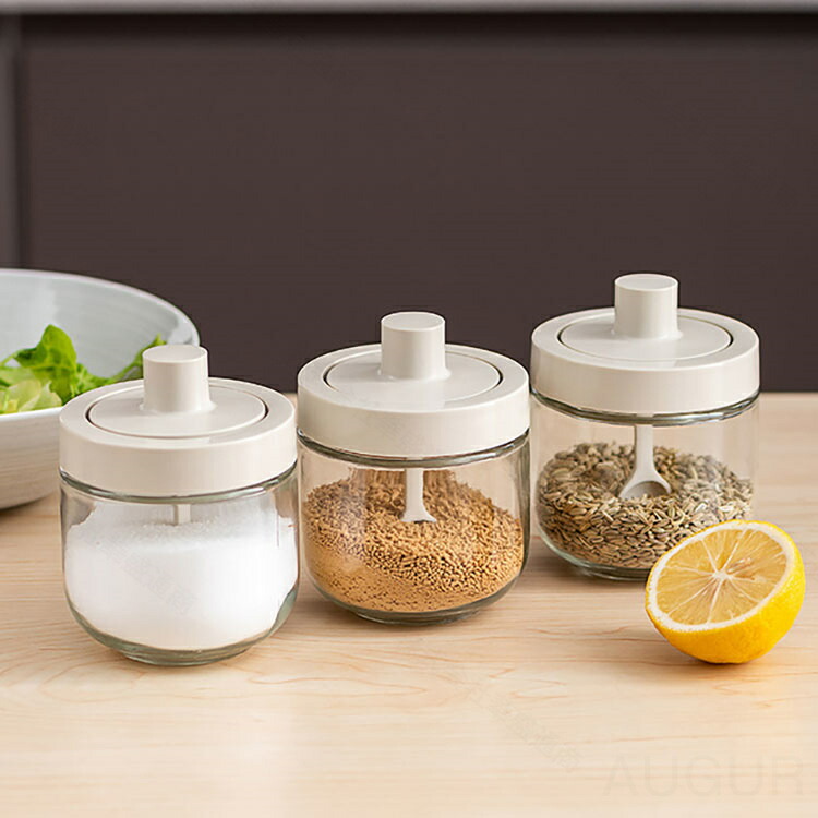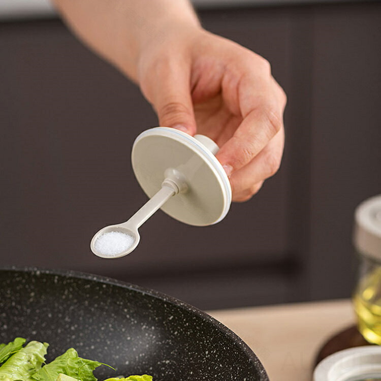 ◆フタと一体になる、スプーン付き。調味料が満杯になっても気楽に蓋を閉めます。一番下まで届きますので調味料を使い切ることができます。