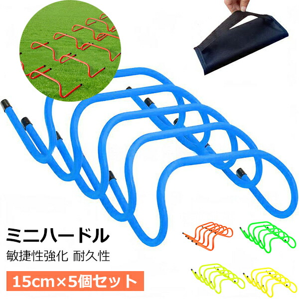 ミニハードル 5個セット 高さ15cm トレーニング 収納ケース キャリーストラップ付き 持ち運び便利 陸上 サッカー バスケ フットサル 野球 練習 耐久性 高さ調整不要 組み立て不要 敏捷性強化