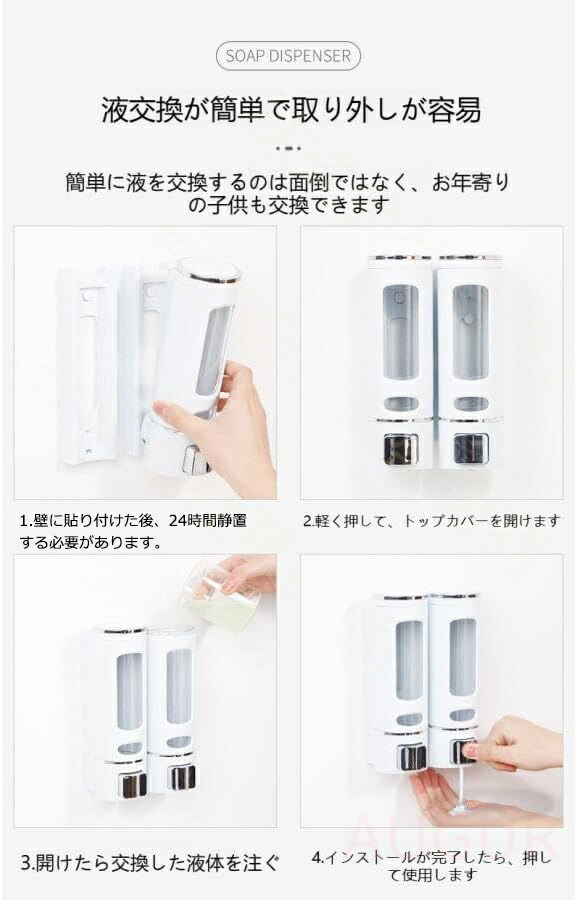 ◆マグネット式ソープディスペンサーが進化して再登場! 水垢・ぬめりとはもうサヨナラ、バスルームを清潔に保ちます 1プッシュが少量だから、髪の長さに合わせて調節がしやすく、ご家族で使う方にもおすすめです。