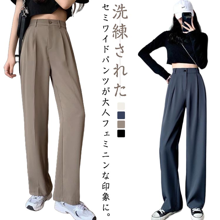 ワイドパンツ レディース スラックス ボトムス パンツ 超目玉商品 ブラック モカ ダークグレー アプリコット S M L XL