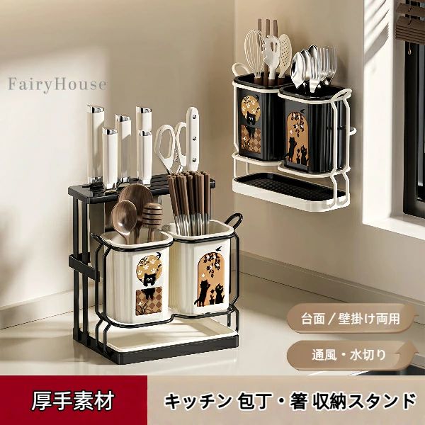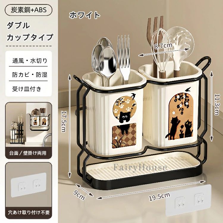 キッチン 包丁立て 厚手素材 卓上水切 食器 カトラリー グラス 箸 カトラリー 箸置き 超目玉商品 ホワイト ブラック 包丁スタンド付きタイプ シングルカップタイプ ダブルカップタイプ