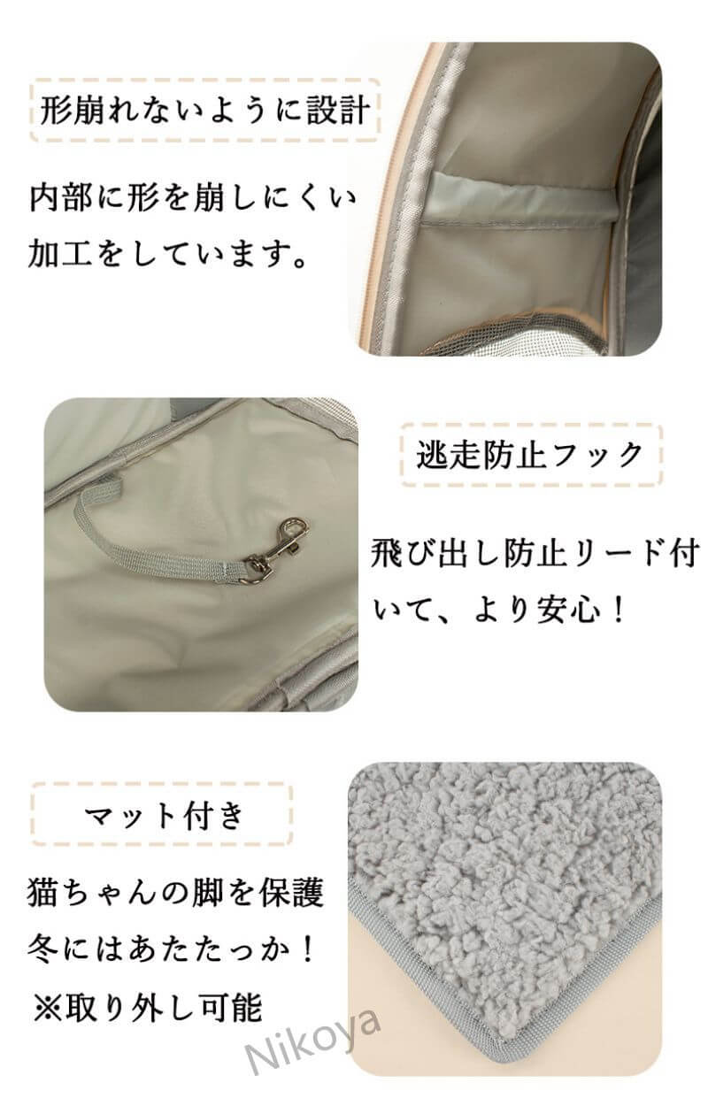 内部の固定フックあり、大切なペットに首輪も接続可能なのでより安心。