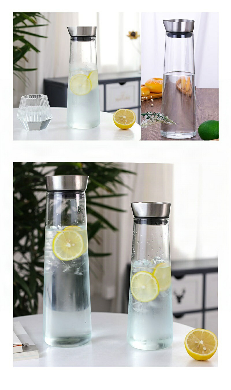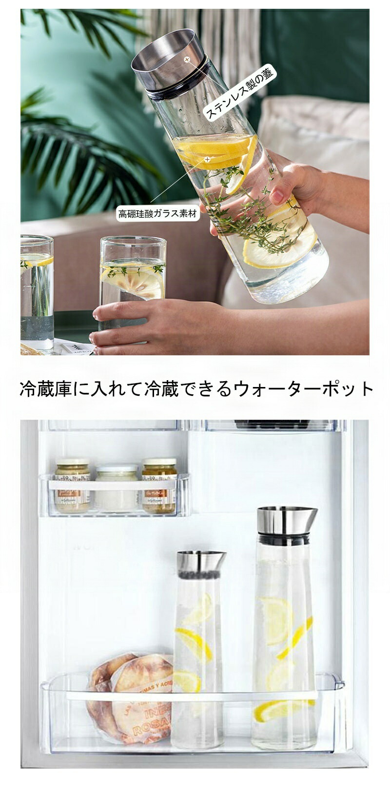 ガラスピッチャー 蓋付き 麦茶ポット 耐熱 ボトル ピッチャー ガラス ウォーターボトル 蓋付きタンブラー 蓋付きマグカップ 蓋付きゴミ箱 1L 1.5L 水差し 冷水筒 ウォーターピッ ドアポケット