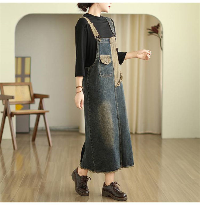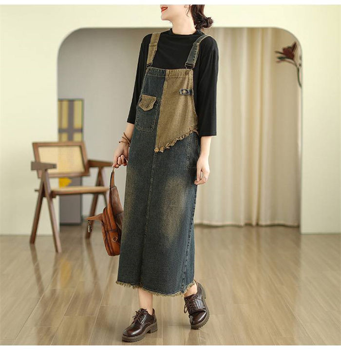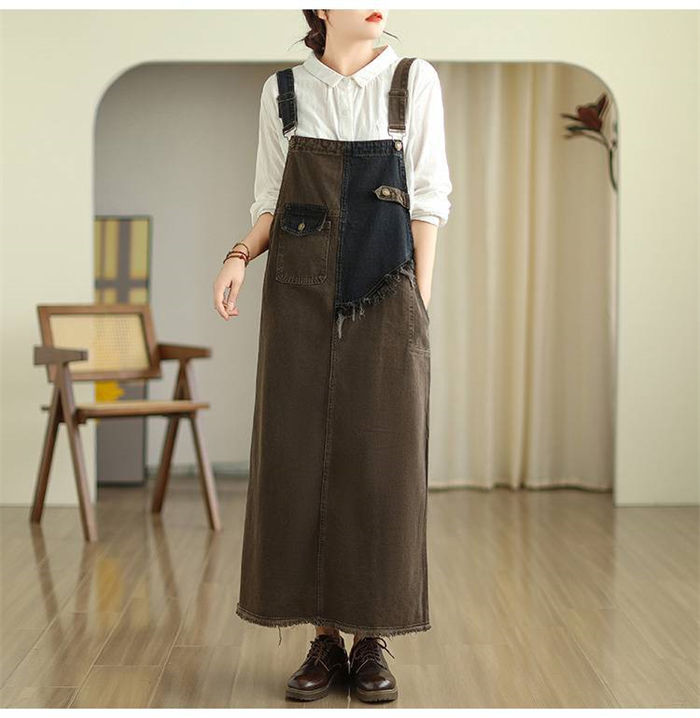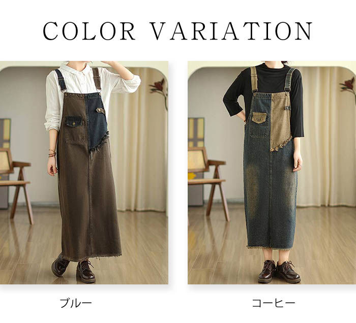 ジャンパースカート レディース デニム ブルー コーヒー M L XL XXL