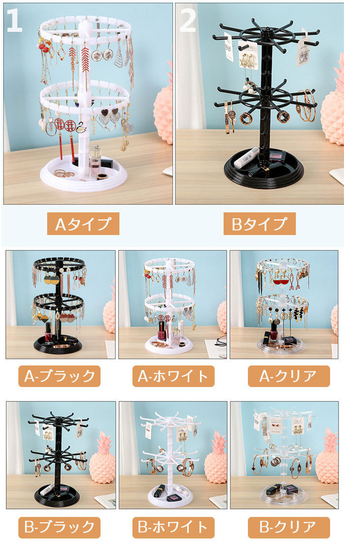 アクセサリースタンド 小物収納 回転し ジュエリー アクセサリー 新作 A-ブラック(2個) A-ホワイト(2個) A-クリア(2個) B-ブラック(2個) B-ホワイト(2個) B-クリア(2個) A-ブラック(1個)+B-ブラック(1個) A-ホワイト(1個)+B-ホワイト(1個) A-クリア(1個)+B-クリア(1個)