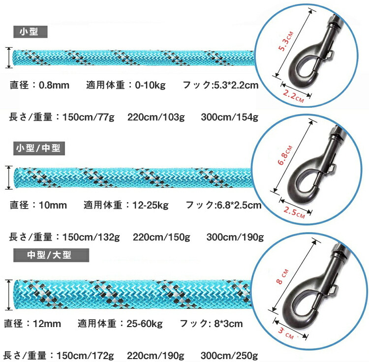 丈夫な犬用リード犬用引きヒモ、持ちやす 犬用品 首輪 胴輪 リード リード 続々入荷中 ブラック グリーン ブルー ローズレッド レッド オレンジ 150cm*0.8cm 150cm*1cm 150cm*1.2cm 200cm*0.8cm 200cm*1cm 200cm*1.2cm 300cm*0.8cm 300cm*1cm 300cm*1.2cm