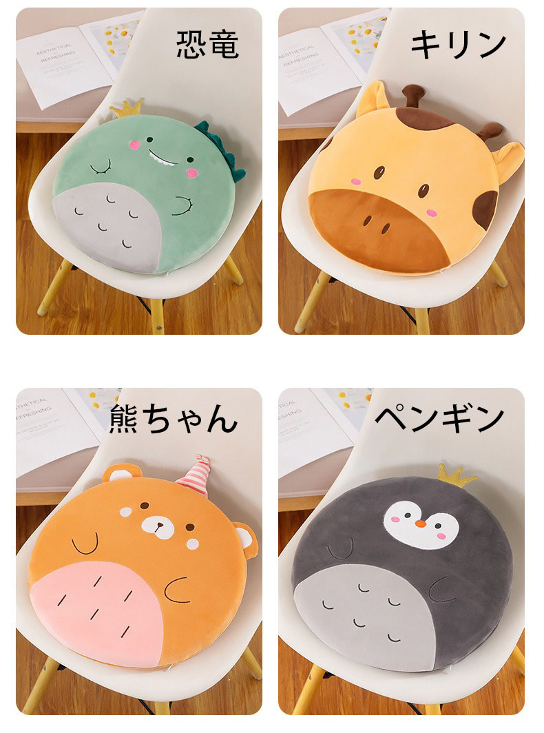 座布団 クッション 椅子用 丸 40× 虎 熊ちゃん 猫ちゃん キリン サメ 恐竜 ペンギン