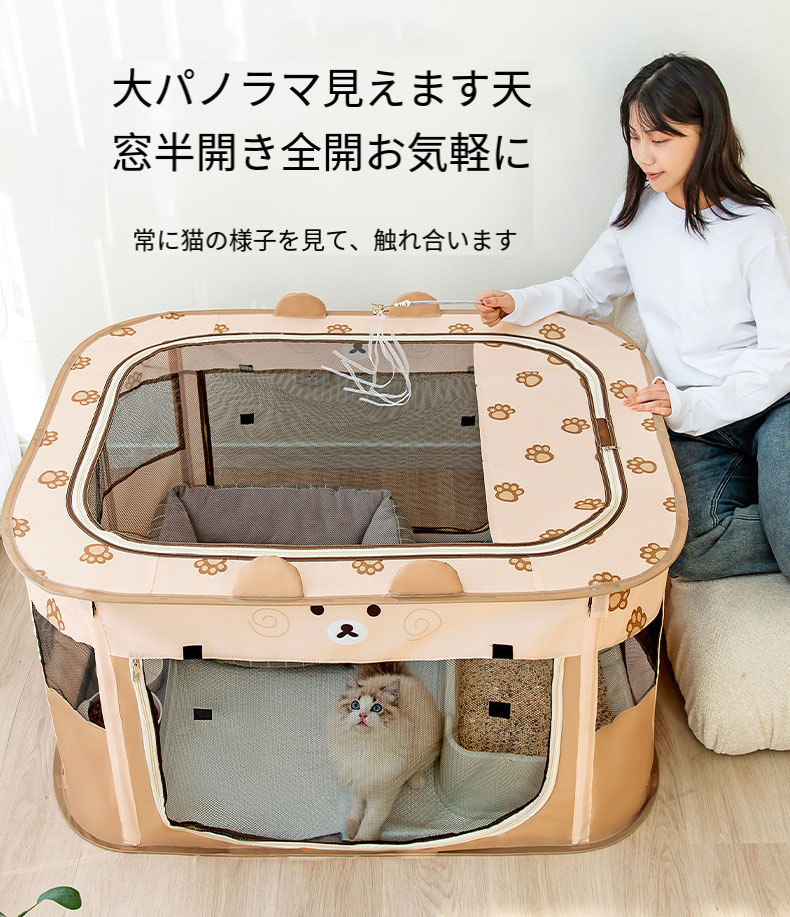 【実用的で便利】サイズが多様で、色が多様で、サイズの大きいペットハウスは、ペットの生活用品を配置することができて、上部には十分に大きい天窓があって、より良い換気と通気ができます。ポケット付きでペットシーツや小物を入れられ、外出時に便利です。