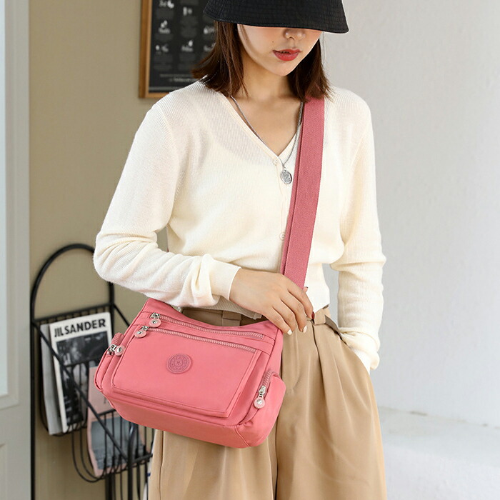ショルダーバッグ 軽量 多層とポケット バッグ 小物 ブランド雑貨 新作 ブラック グリーン ライトパープル ピンク