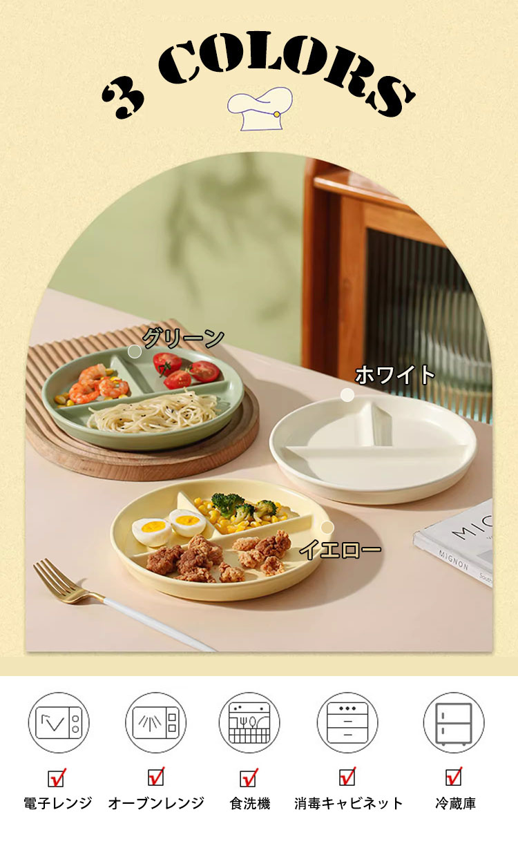 ランチプレート 仕切りプレート 北欧 おしゃれ 丸形 食器皿 三分格皿 仕切り皿 朝食皿 サラダ皿 ランチ皿 ディナー皿 プレートバランスのとれた食事プレート 割れにくい キッチン雑貨 トッピング皿