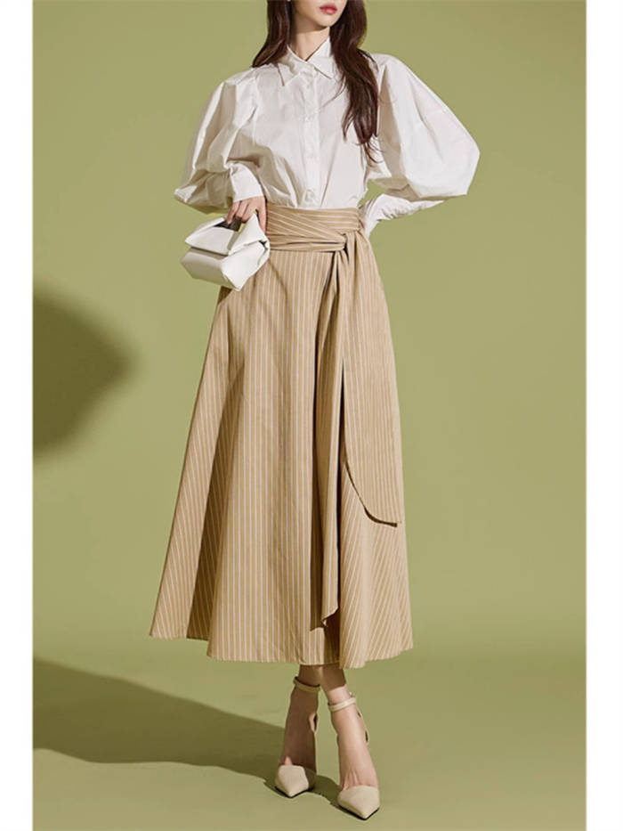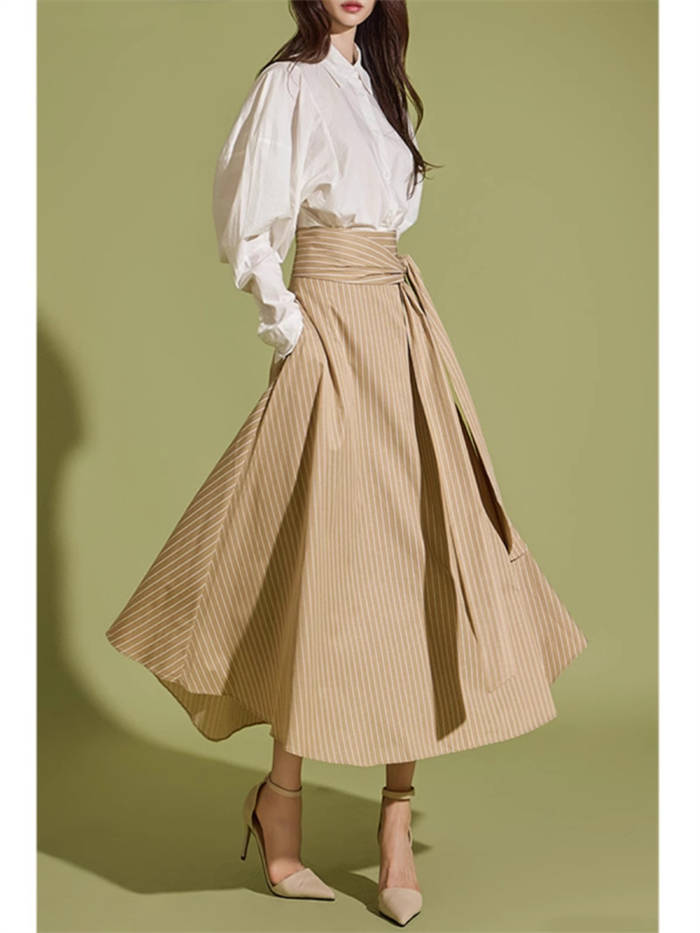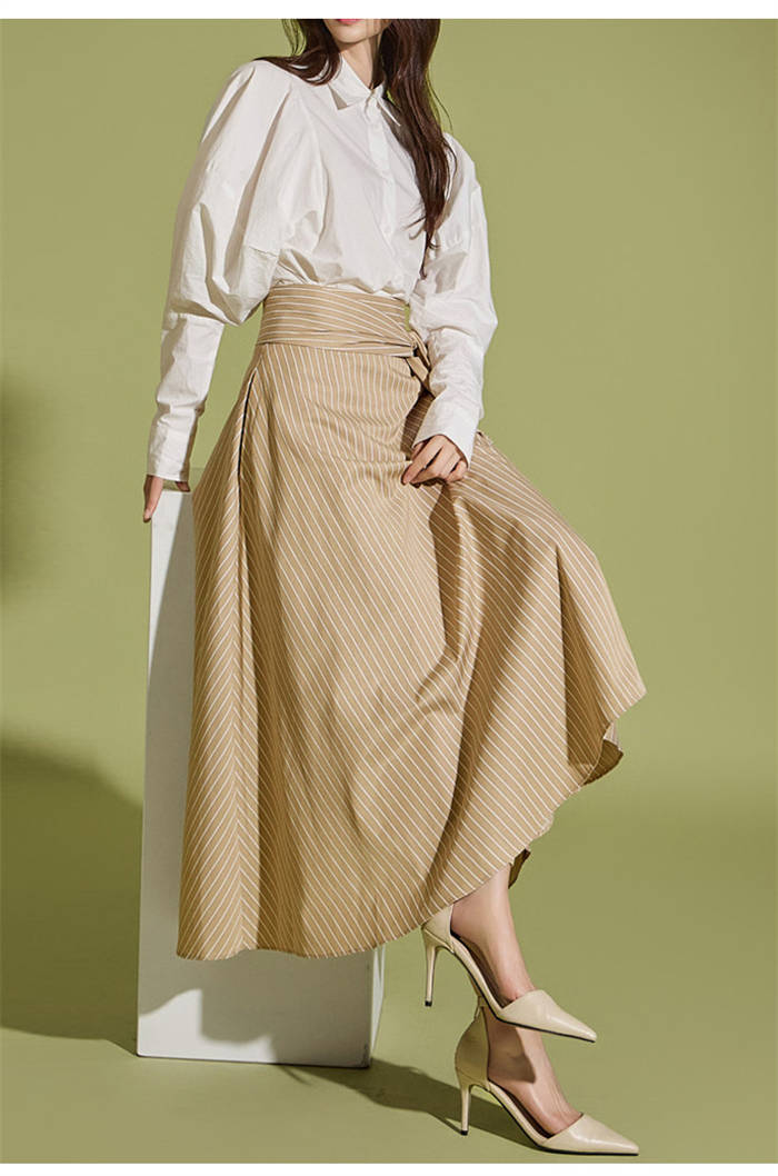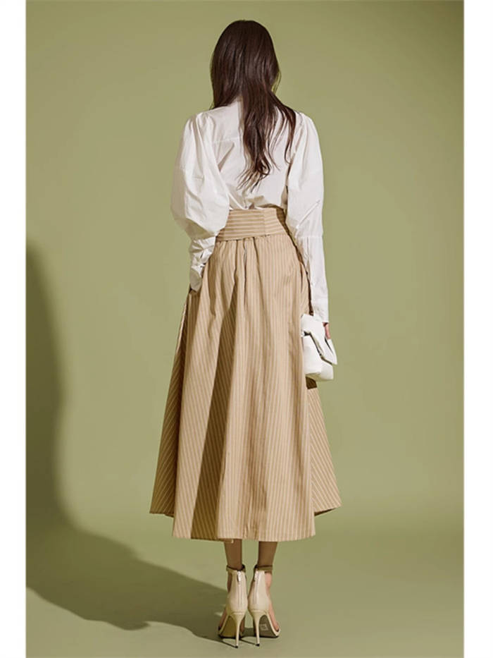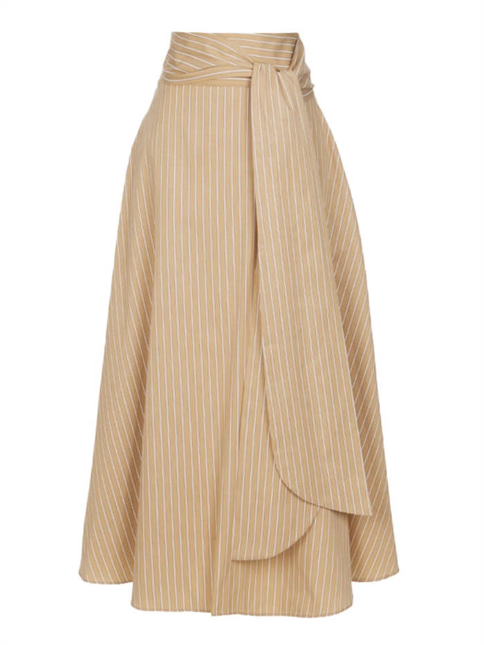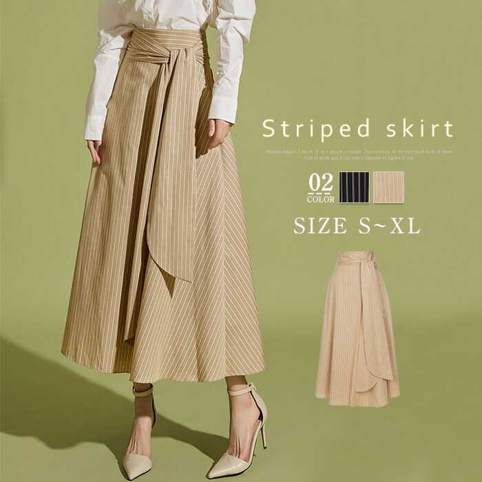 ストライプスカート フレアロングスカー ボトムス スカート 人気 キャメル 黒 S M L XL