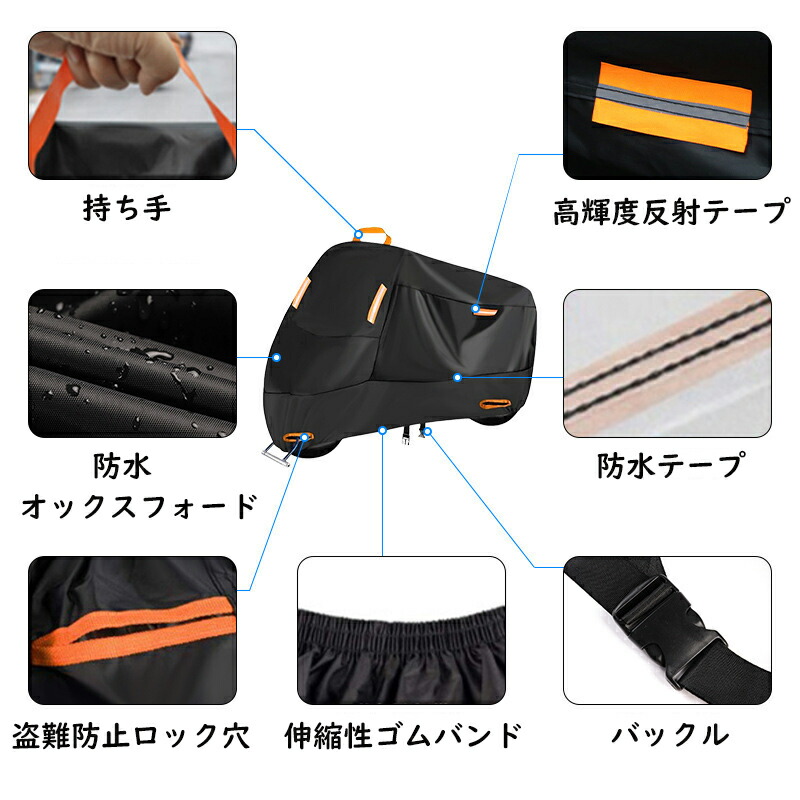 バイクカバー 210D 厚手 車体カバ ブラック ブラックオレンジ M L XL 2XL 3XL 4XL