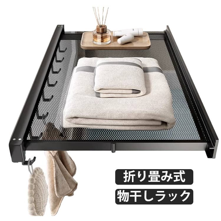 折りたたみ式 物干しラック 洗濯物干し棚 折りたたみラック 壁掛け 穴あけ不要 室内干し 浴室 物干し棚 タオル掛け タオルハンガー ハンガー掛け フック付き 物干し台 タオルラック ラン タオル置き