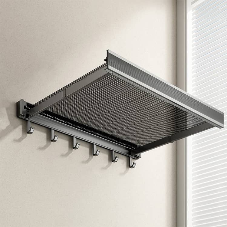 折りたたみ式で使わない時はスリムに収納できる、壁掛けタイプの物干しラックです。